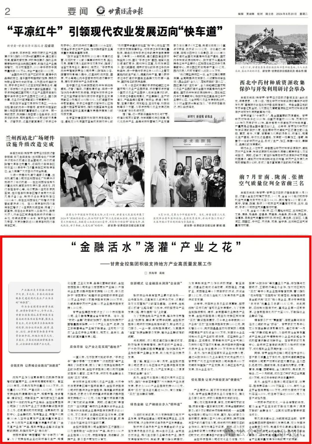 作為全省國有金融資本投資、融資和管理中心,今年以來,甘肅金控集團(tuán)認(rèn)真貫徹落實(shí)省委省政府各項(xiàng)決策部署,聚焦主責(zé)主業(yè),充分發(fā)揮多業(yè)務(wù)板塊協(xié)同優(yōu)勢(shì),綜合運(yùn)用證券、投資、基金、征信、融資租賃和要素市場(chǎng)等金融手段,積極打造多元化、多層次、多渠道的投融資服務(wù)體系,以金融活水澆灌產(chǎn)業(yè)之花。